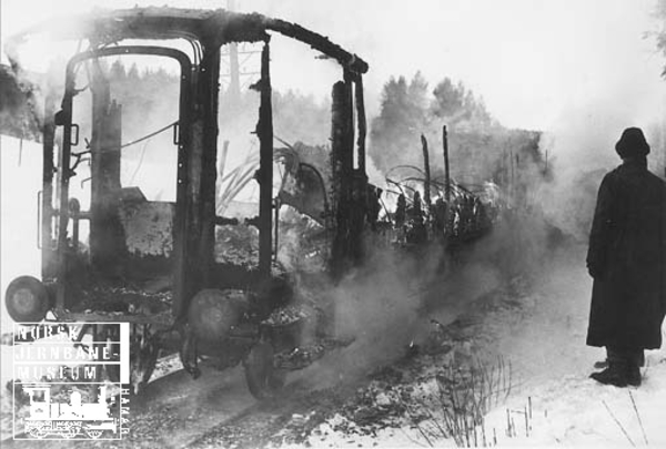 When the freight train passed Ustaoset Station the brakes failed. The driver gave warning signals with the steam whistle, and the guard climbed on the wagons and attempting to apply the hand brakes. This was not enough to avoid the collision. The freight train passed Geilo at high speed. An attempt was made to make the freight train derailing before it hit the night train. This attempt failed and the freight train collided with the night train at Breifoss. Both the driver and the stoker on the night train’s locomotive were killed instantly. The tank wagons were destroyed, and the gasoline caught fire. Some of the passenger coaches also caught fire. At least 25 Norwegian civilians and an unknown number of German soldiers were killed. The driver and the stoker on the freight train jamp off the locomotive before the collision, and were not injured. They were examined by the German police. Unfortunately they were suspected for sabotage, and sent to Grini concentration camp. The railway line was closed for three days.